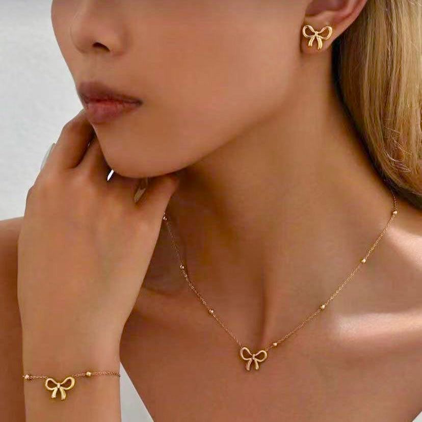 🎀 Luxury Gold Bow Jewellery Set!